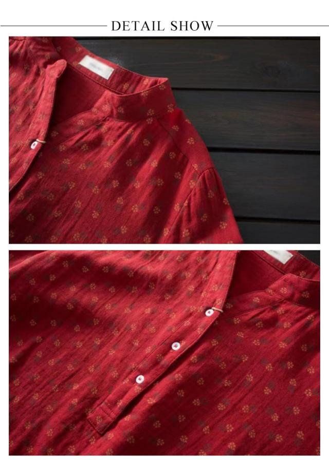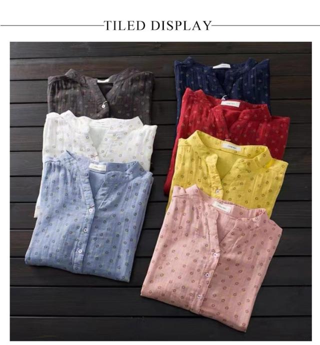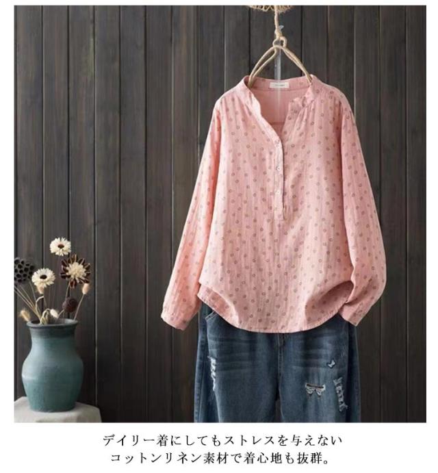 レディース ガーゼ ブラウス チュニック オーバーブラウス ダブルガーゼ ガーゼ ガーゼシャツ シャツ 立ち襟 綿麻シャツ 小花柄 キーネック ロングシャツ ミセス 大人 ファッション シャツブラウス ホワイト ピンク ブルー ネイビー レッド イエロー