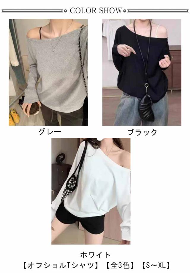 | 【オフショルTシャツ】【全3色】【S〜XL】 女性らしい肌見せが叶うオフショルダー長袖Tシャツ。 ボディラインを拾わないサイズ感で着やすさも◎ マーメイドスカートやフレアスカートとも相性抜群!どんなボトムスにもマッチするのでこれからの季節に重宝するアイテムです。 | |