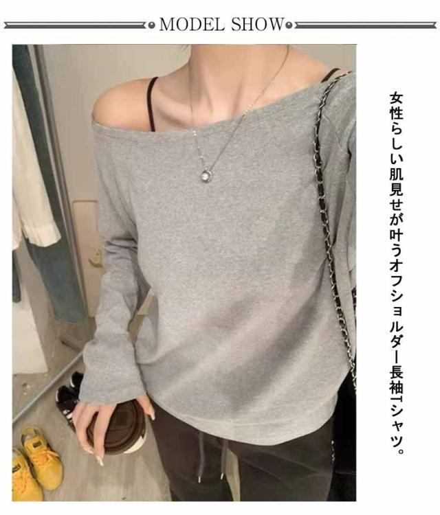長袖 Tシャツ ゆったり オフショル オフショル オフショル ワンショル tシャツ トップス カットソー 春 秋 冬 レディース 無地 シンプル オフショルダー カジュアル おしゃれ 体型カバー 韓国 ファッション