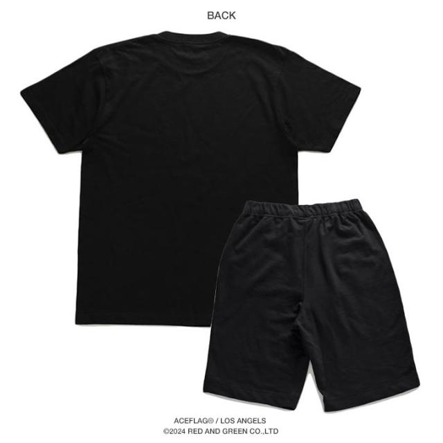【43%OFF】ACE FLAG 上下セット 半袖 ブランド Tシャツ ハーフパンツ メンズ 春夏用 黒 大きいサイズ エースフラッグ セットアップ 裏パイル かっこいい シンプル THUG LIFE サグライフ ビッグシルエット b系 ヒップホップ ストリート系 ハイ AF-SE-TS-160