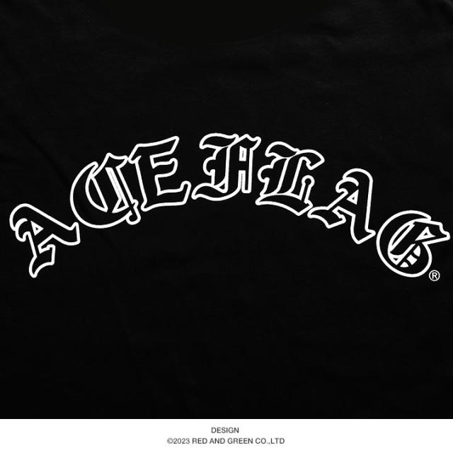 縁取り&アーチロゴによるハイエンドなフロントプリント。「ACE FLAG/エースフラッグ」は、勝者の旗を意味しています。