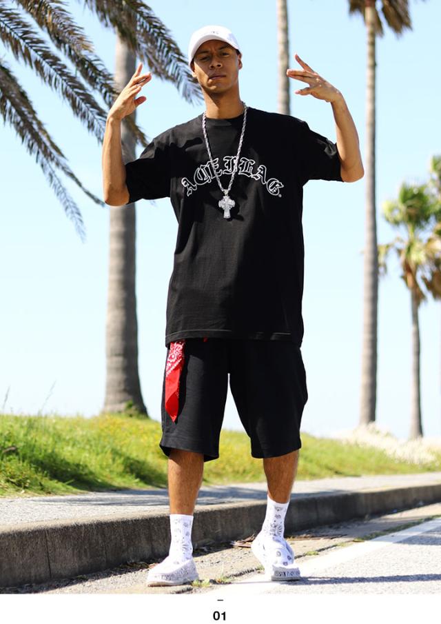 ACE FLAG 上下セット 半袖 ブランド Tシャツ ハーフパンツ メンズ 春夏用 黒 大きいサイズ エースフラッグ セットアップ2Pac THUG LIFE サグライフ ビッグシルエット b系 ヒップホップ ファッション ダンス ストリート系 ハイ 新作 AF-SE-TS-152