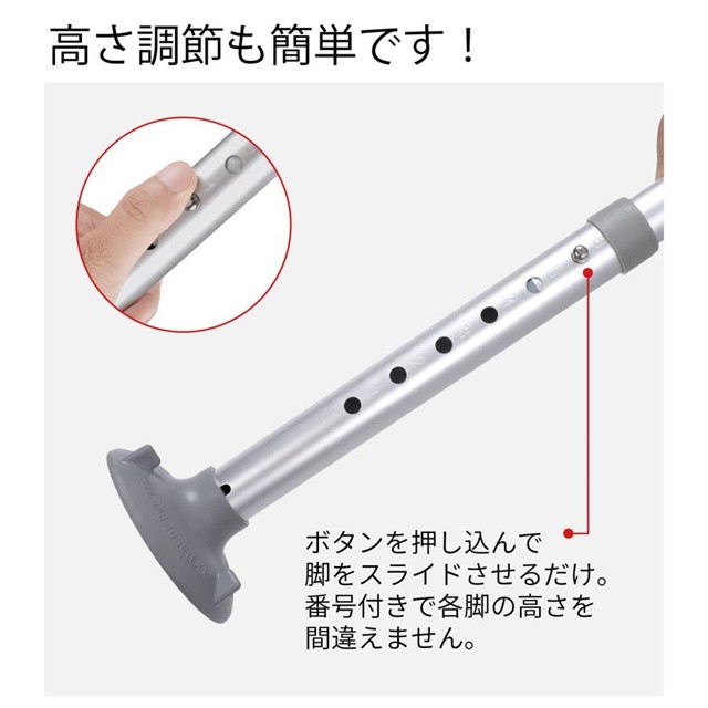 ・滑り止め付きで体重を乗せて寄りかかっても滑らない倒れない。立ち座り時のサポートと安定感を提供。