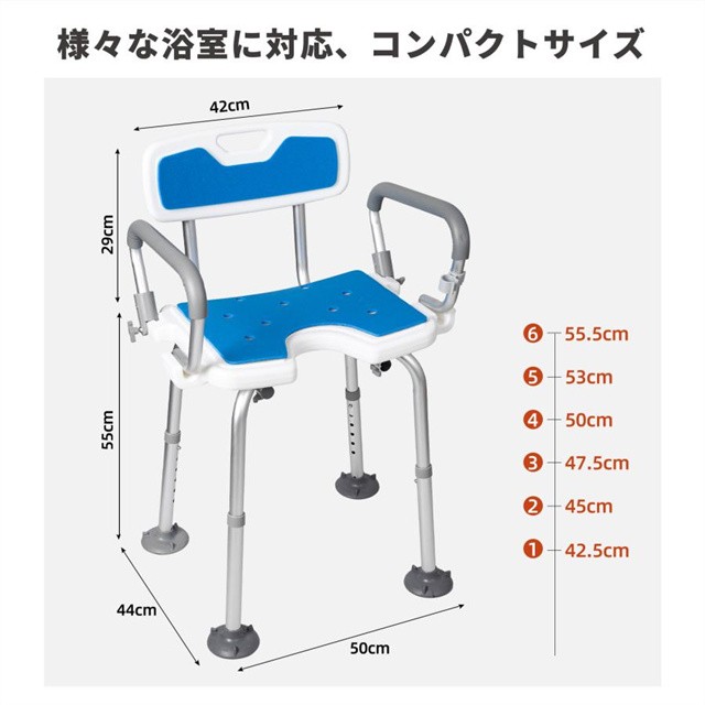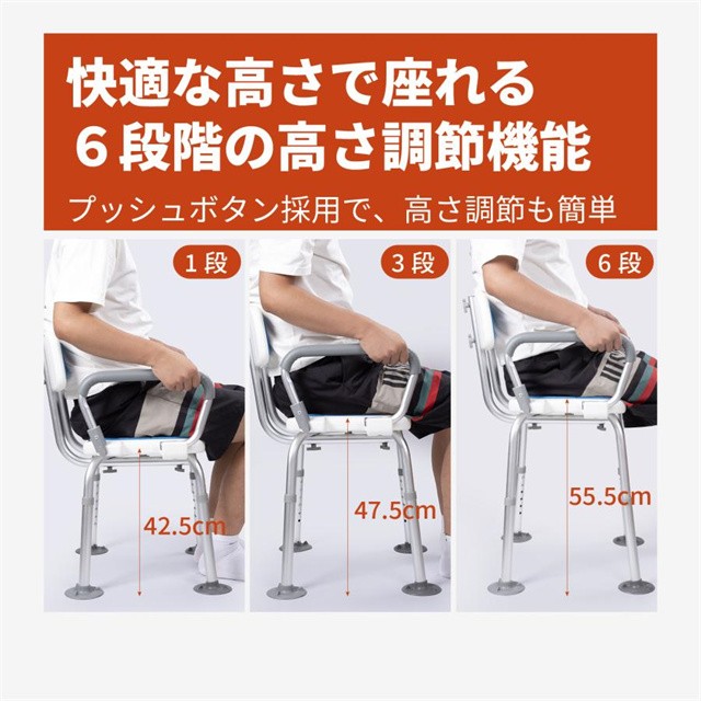新登場 シャワーチェア 介護 肘付き 背もたれ付 6段階高さ調節 バスチェア 耐荷重180KG 軽量 介護用風呂椅子 転倒防止 立ち上がり補助 高齢者 妊婦用 シャワーチェアー 送料無料agesugi_ssp
