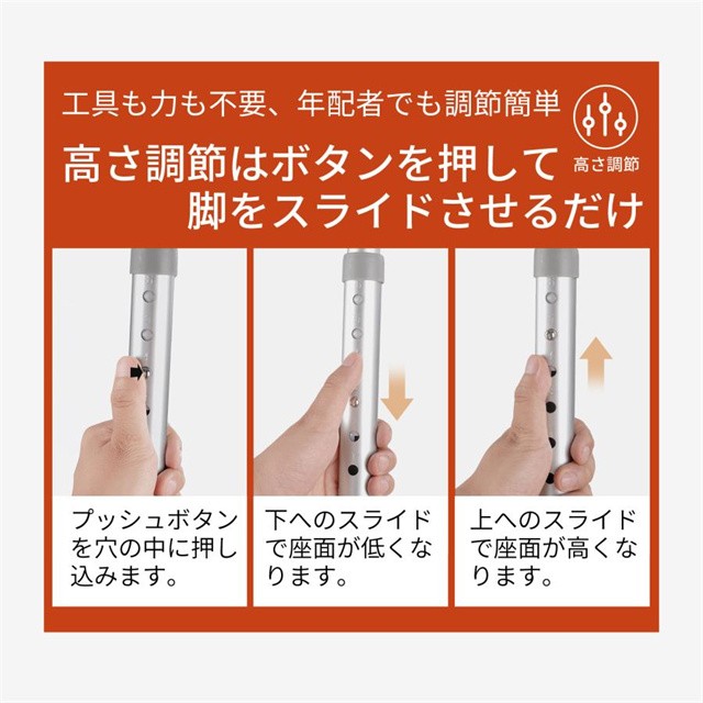 ・42.5cmから55.5cmまでの6段階調整が可能。ご自身の身長や好みに合わせて簡単に調節できます。 使用時の注意点: