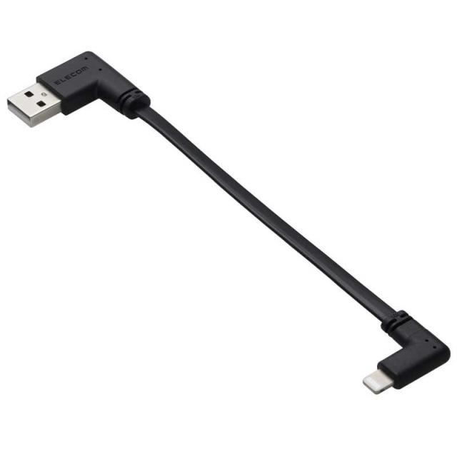 エレコム ELECOM iPhone 充電ケーブル USB-A to ライトニングケーブル 短い 0.1m L字 フラット MFi認証 モバイルバッテリー 向け ブラック MPA-UALLL01BK