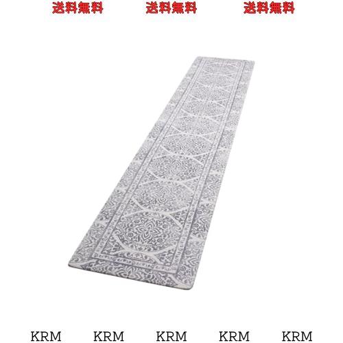 Ashmore キッチンマット 拭ける台所マ ット PVC 撥水 おしゃれ 滑り止め 抗菌 防炎 厚さ10mm お手入れ簡単 約45cm*240cm キリム グレー