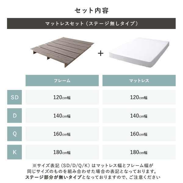 商品仕様: ローベッド ステージ無しタイプ ダブルベッド 幅140cm ボンネルコイルマットレス付 グレー 灰色ジュ フロアベッド