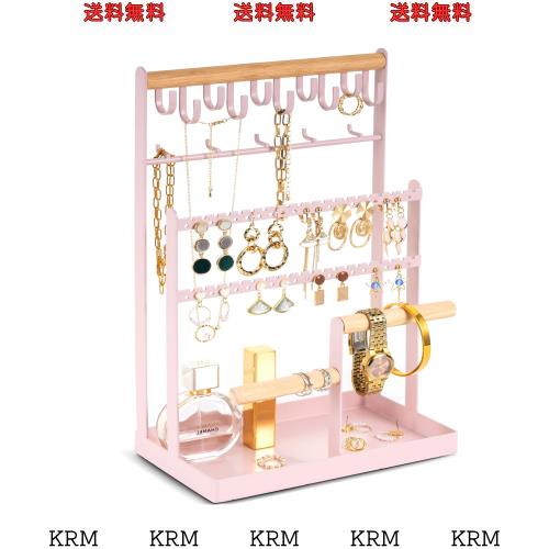 ProCase ジュエリースタンド アクセサリー収納 ネックレス・ブレスレット掛け イアリング・ピアススタンド 小物トレイ-ピンク
