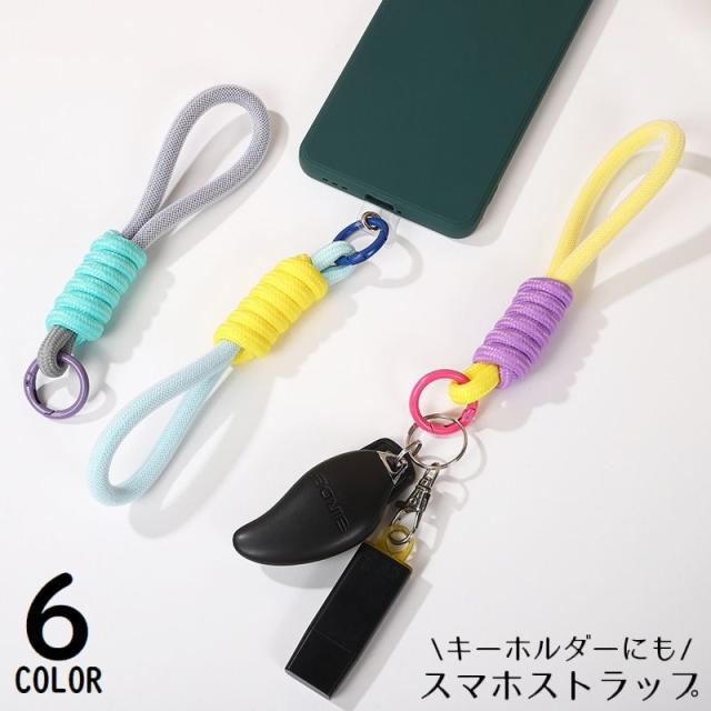 スマホストラップ ハンドストラップ 太丸紐 丸型カラビナ 落下防止 紛失防止 カメラ デジカメ キーホルダー キーリング おしゃ