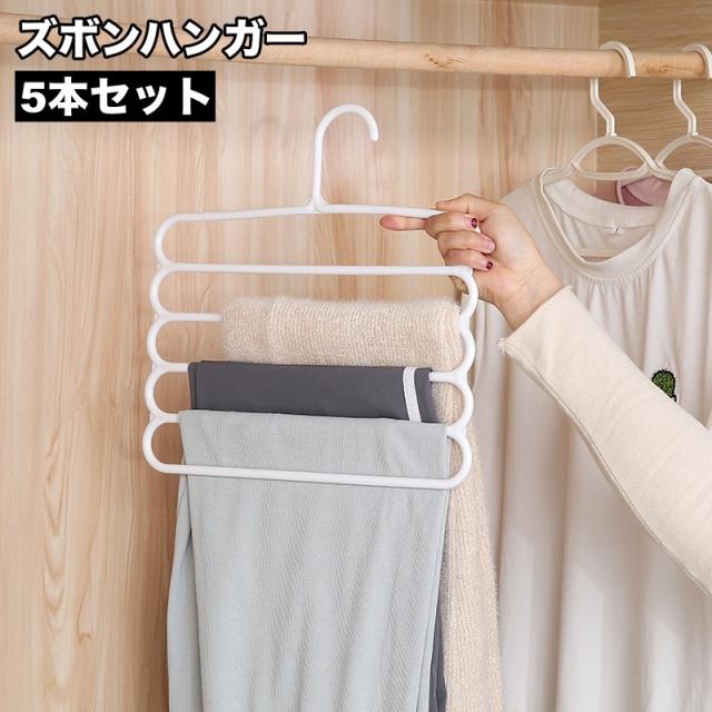ズボンハンガー 5本セット 衣類ハンガー パンツハンガー 5段 省スペース 衣類収納 タオル掛け マフラー掛け ズボン収納 しわ
