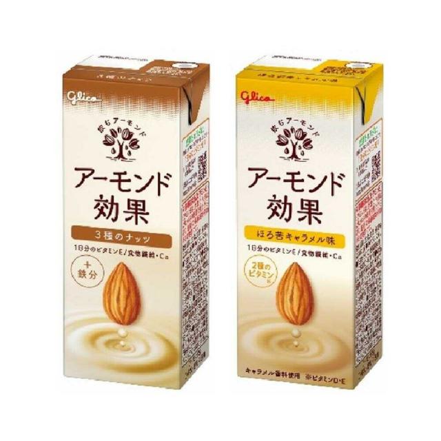 ◆グリコ アーモンド効果 ほろ苦キャラメル味 200ml【12本セット】+3種のナッツ 200ml 【12本セット】