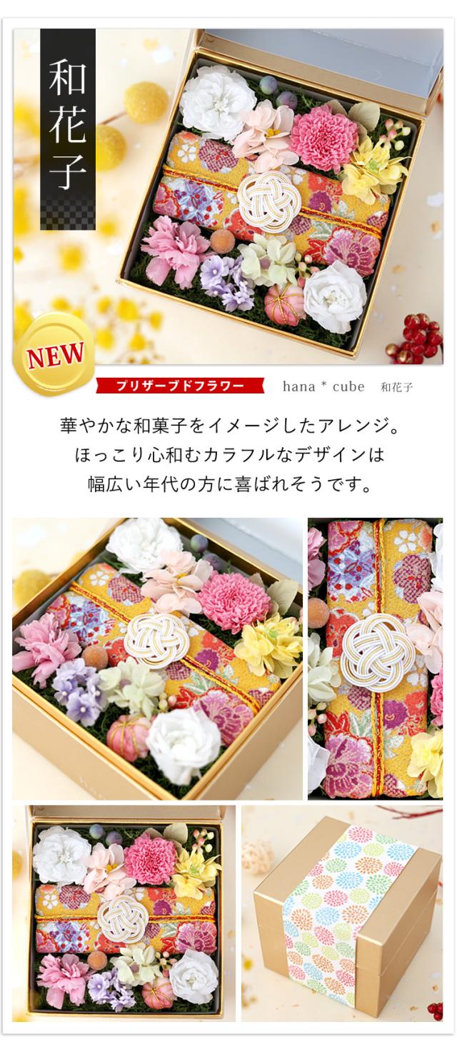 送料無料 和風 ボックスフラワー プリザーブドフラワー hanacube 寿 千代 和花子 お花 ギフト 花 誕生日 プレゼント 女性 母 結婚祝い ひな祭り 初節句 花 定年 退職 送別会 結婚記念日 還暦 古希 喜寿 米寿 祝い ブリザードフラワー フラワーボックス お見舞い