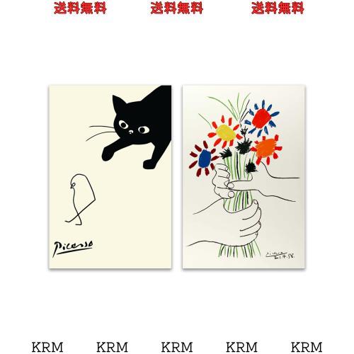 アート ポスター ピカソ 鳥を捕まえる猫 ネコとひよこ 絵画 ピカソ 猫 動物 壁画 パネル 飾り絵 部屋飾り 壁掛け 玄関 木枠付きの完成品