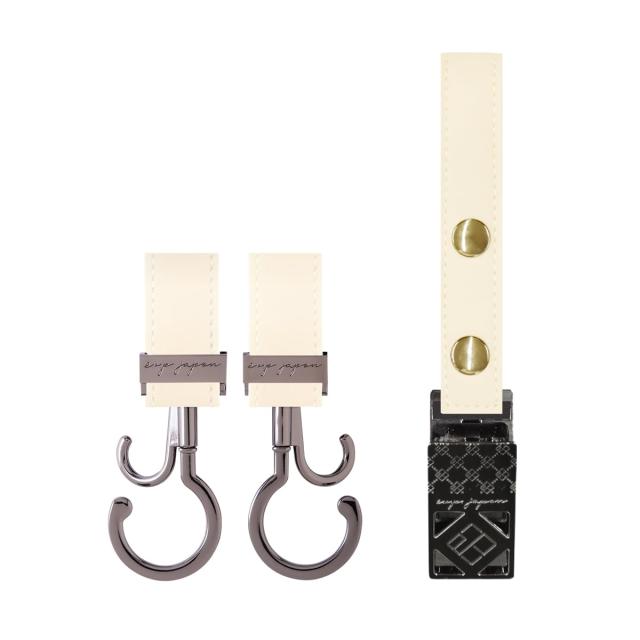 ◆商品名:e.x.p.japon 2点バギーフック&シューズクリップ BK-Kusumiミルク 360度回転式 ベビーカーフック マルチクリップ ひざ掛けクリップ b-bhsc