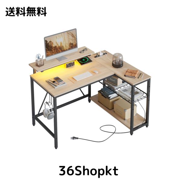 Bestier l字デスク 幅107cm パソコンデスク 収納 コンセント付き(2口のACコンセント+1口のUSBポート)ゲーミング ledライト付き L字型 p