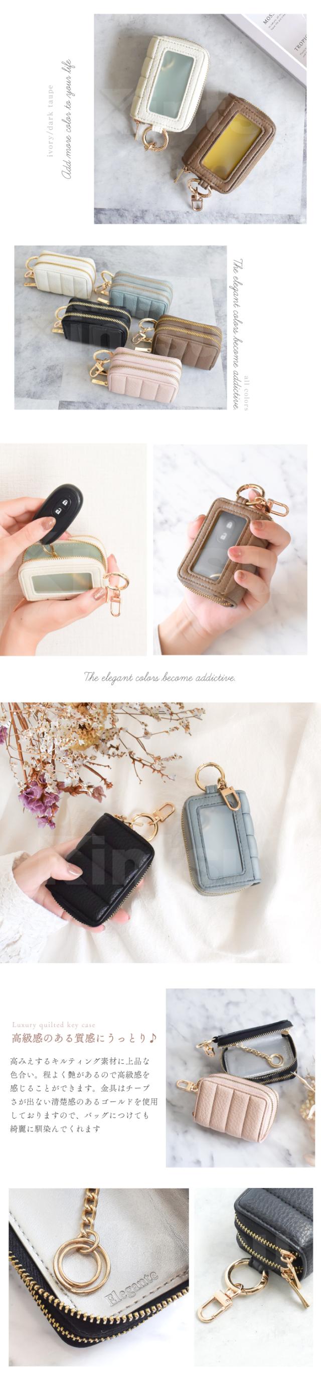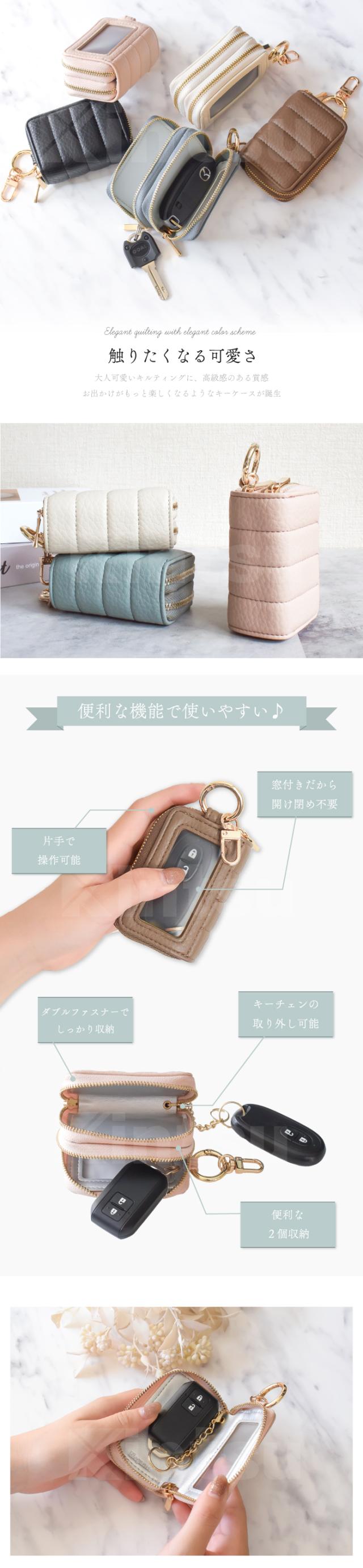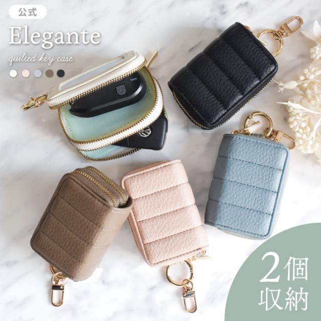 公式 Elegante スマートキーケース 2個収納 窓付き レディース 車 鍵 ダブルジッパー カラビナ付き コンパクト 大人可愛い くすみカラー バイカラー キーケース スマートキー