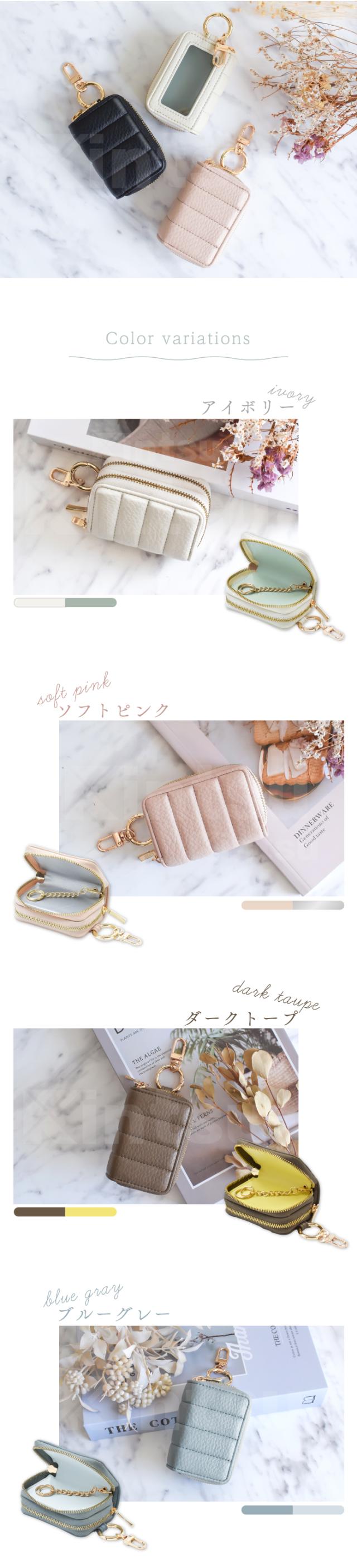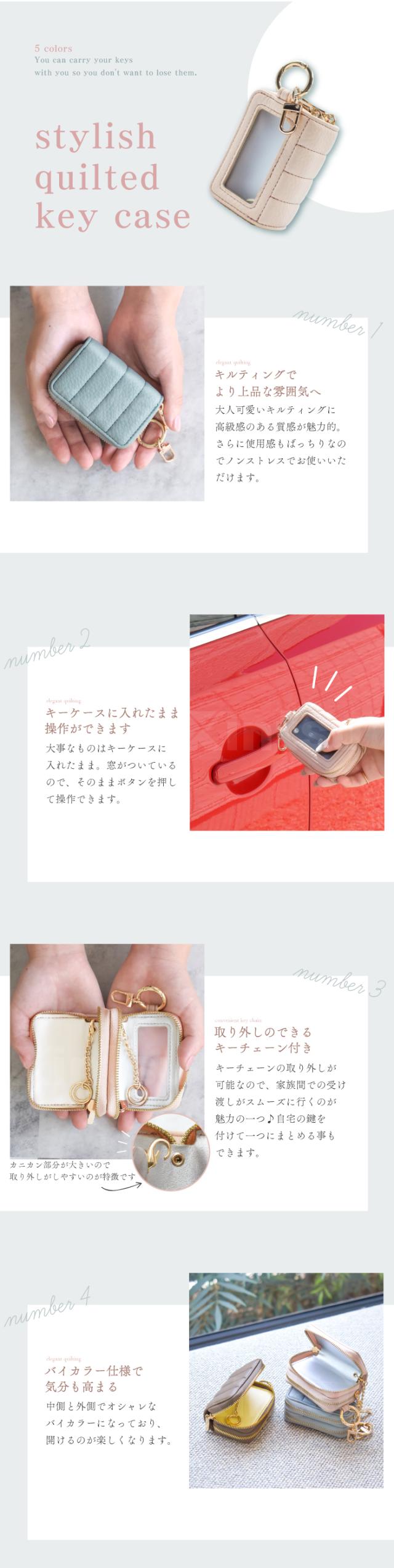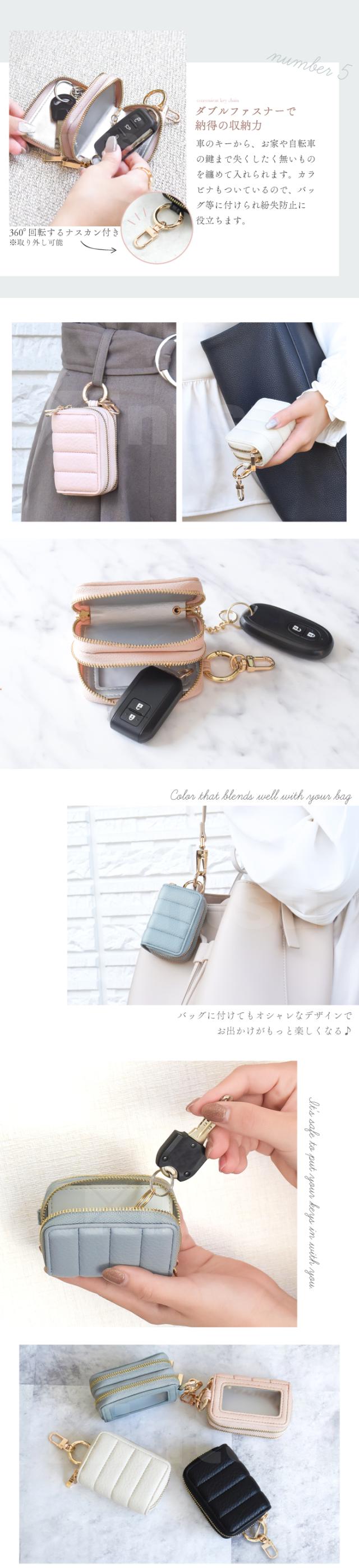 公式 Elegante スマートキーケース 2個収納 窓付き レディース 車 鍵 ダブルジッパー カラビナ付き コンパクト 大人可愛い くすみカラー バイカラー キーケース スマートキー