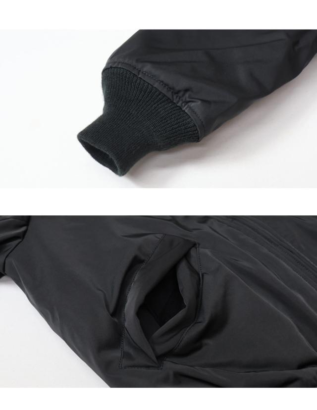 | 素材 | 表地: ポリエステル100% 裏地: ポリエステル100% 中わた: ポリエステル100% リブ部分: アクリル62%, 毛27%, ポリエステル9%, ポリウレタン2% ポケット袋地: ポリエステル100% ししゅう部分: レーヨン100% |