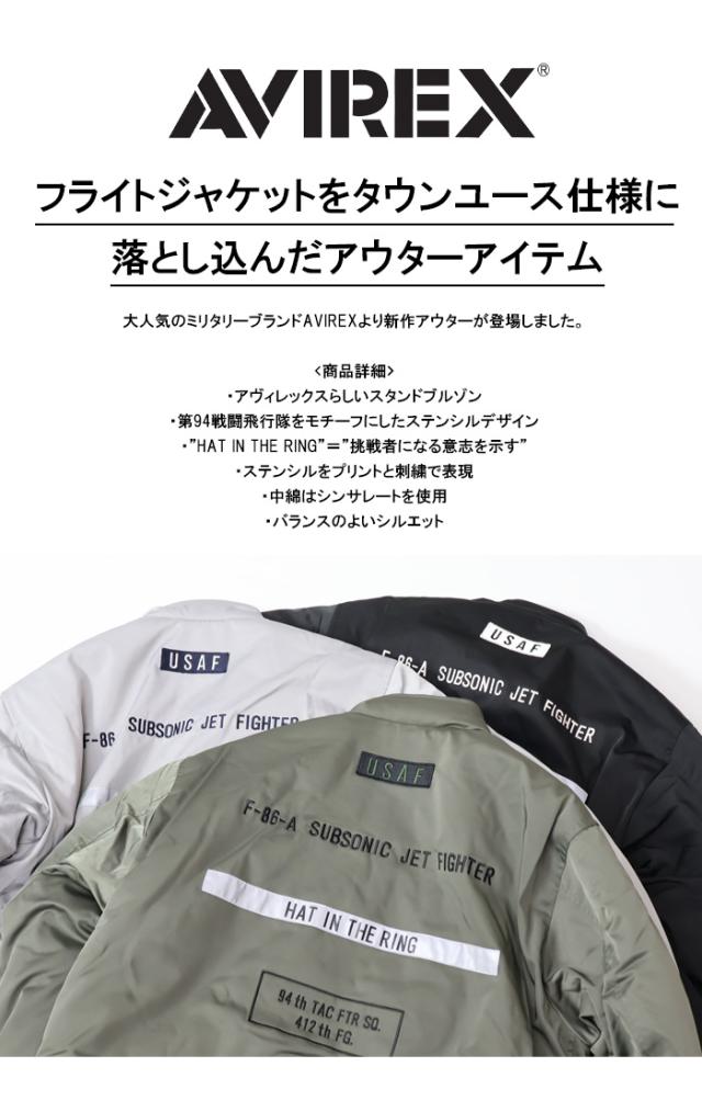 AVIREX アヴィレックス ステンシルジャケット HAT IN THE RING 中綿アウター ブルゾン メンズ アビレックス 送料無料 783-4252036