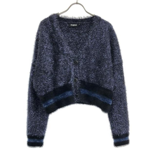 デシグアル ボーダー 長袖 ラメ ファー カーディガン S ネイビー系 Desigual レディース