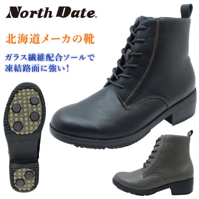 | ノースデイト レディース スノーブーツ 2401 防滑 防寒 防水 ショートブーツ 紐靴 ファスナー NORTH DATE ダテハキ 北海道 |
