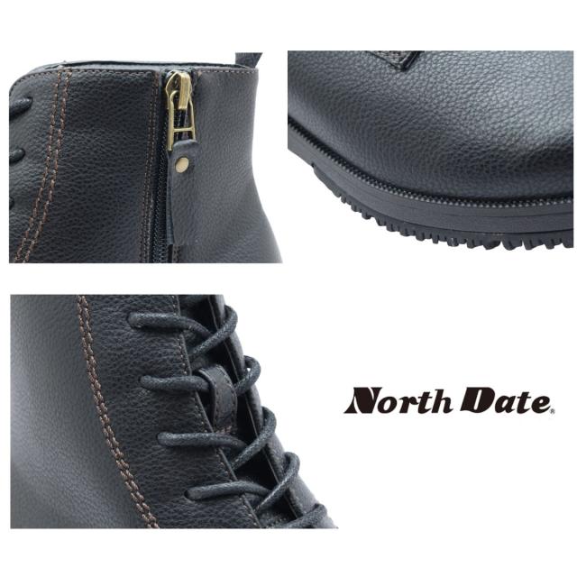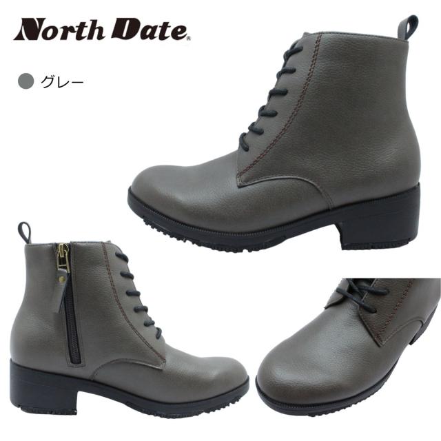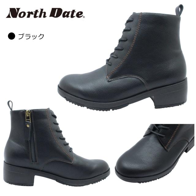 ノースデイト レディース スノーブーツ 2401 防滑 防寒 防水 ショートブーツ 紐靴 ファスナー NORTH DATE ダテハキ 北海道