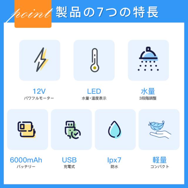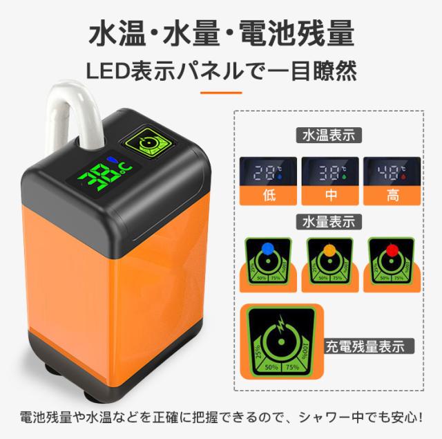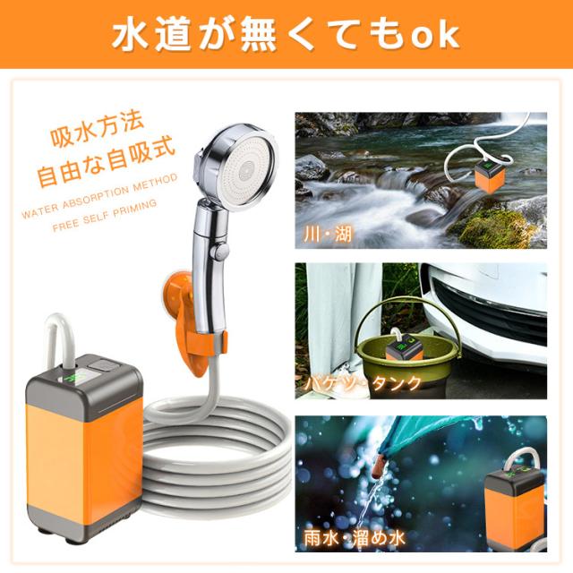 簡易シャワー ポータブルシャワー 電動 USB充電式 6000mAh アウトドアシャワー 電動シャワー 携帯 水量調節 温水対応 ホルダー付き 便利グッズ 節水 アウトドア