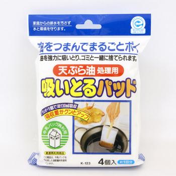 ・手や台所を汚さず、パッドに油を吸収させるだけで簡単に処理できます。