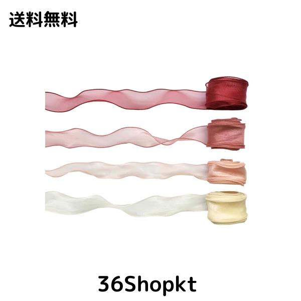 4色 オーガンジーリボン ピンク系 幅40mm 無地 ヘアアクセサリー ギフト ラッピング ウェディング 装飾 長約10m/巻
