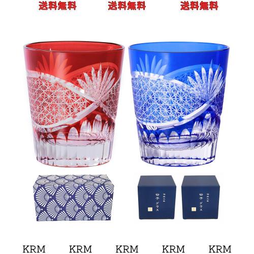 【Amazon.co.jp 限定】FONYUHUA 切子 グラス ペア ロックグラス おしゃれ 菊つなぎ 文様 ギフトセット お酒 日本酒 ビール お祝い 結婚祝