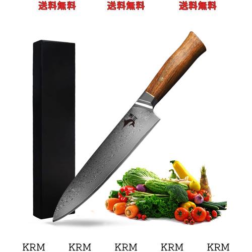 漁川 ダマスカス牛刀 刃渡り198mm 67層VG10ダマスカス肉切包丁 一体構造花梨木瘤ハンドル