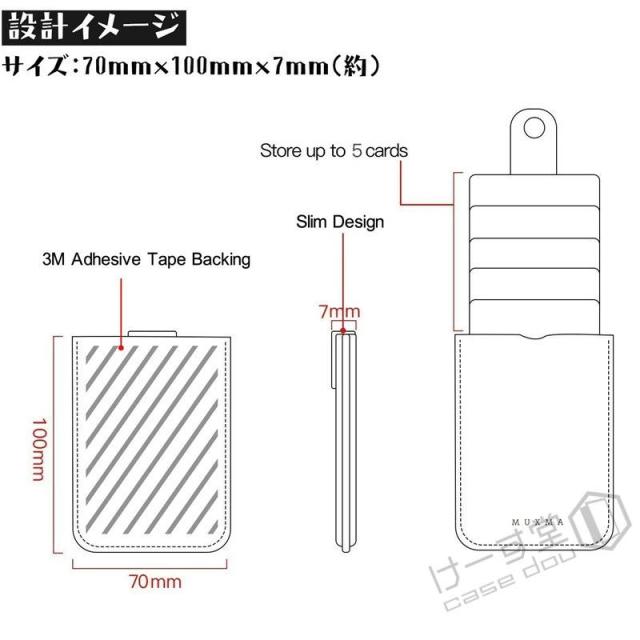 汎用型スマホ用カードケース スマホの背面に貼り付けるカードポケット 各種スマートフォン マルチ対応 カードケース RFID スキミング防止 RFID機能 軽量 スリム レザー huawei iPhone Xperia Galaxy AQUOS ARROWS カードケース 貼り付け シンプル カード入れx5つ