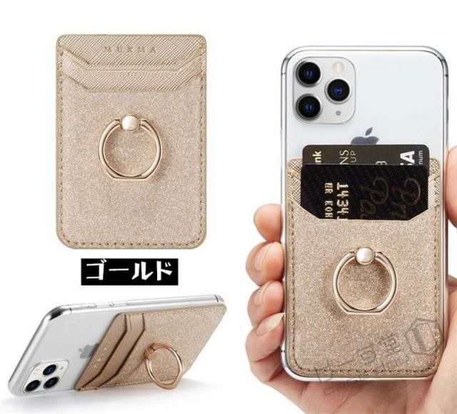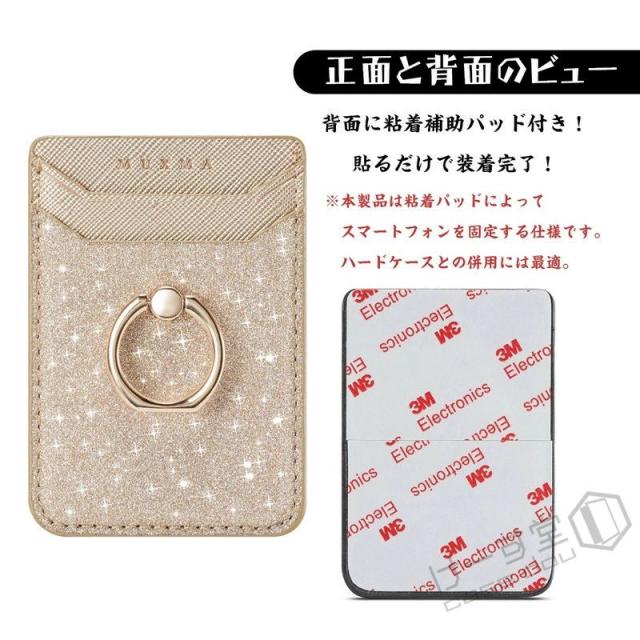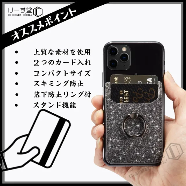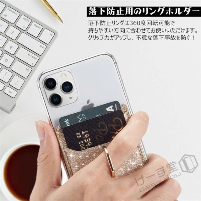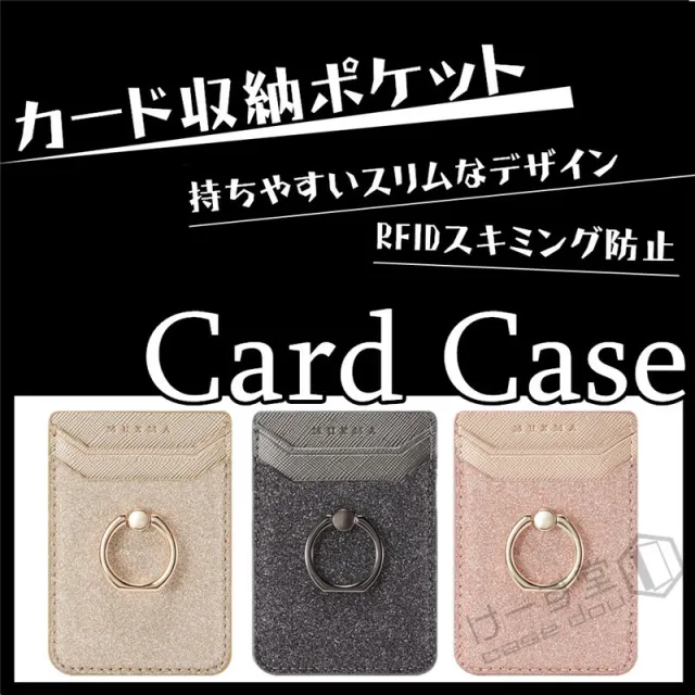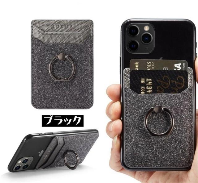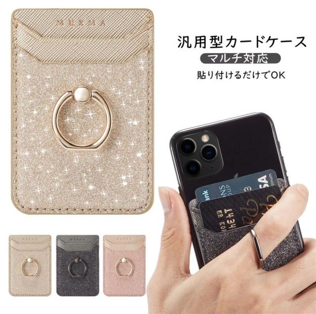 スマホ用カードケース 各種スマートフォン に対応 カードケース 汎用型 スマホの背面に貼り付けるカードポケット マルチ対応 カードケース RFID スキミング防止 スリム レザー huawei iPhone Xperia Galaxy カード収納 貼り付け シンプル リング付き スタンド機能 落下防止