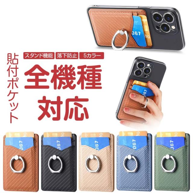 スマホカードケース リング 落下防止 スタンド カード収納 背面ポケット 貼り付け カードポケット 貼る スマホカードケース貼り付け スマホポケット カード スマホカードケース アクセサリー スマホアクセ icカード 収納ポケット