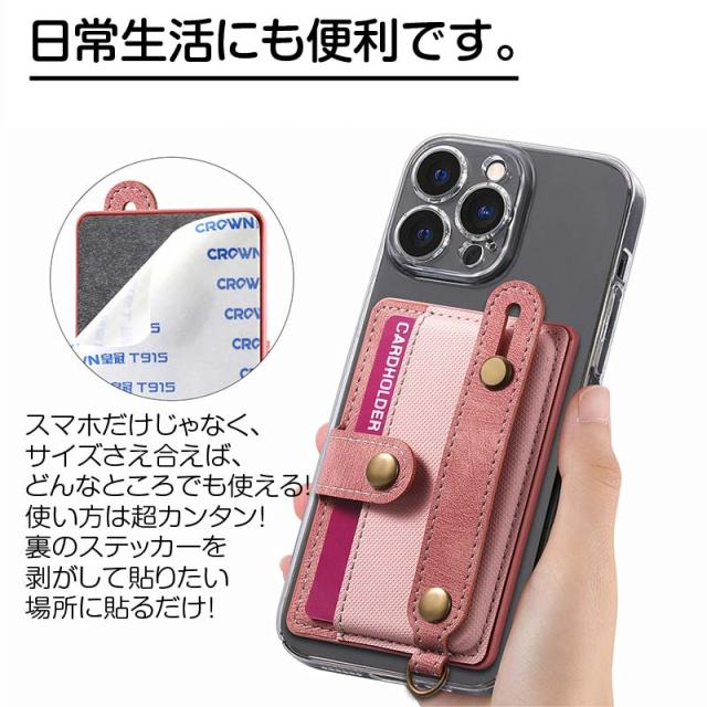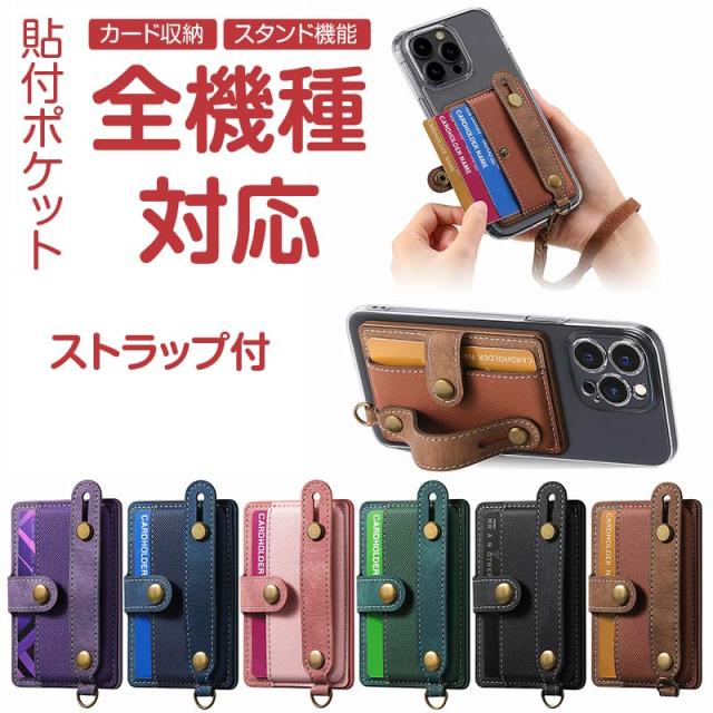 スマホカードケース ストラップ バンド 落下防止 スタンド カード収納 背面ポケット 貼り付け カードポケット 貼る スマホカードケース貼り付け スマホポケット カード スマホカードケース スマホアクセ icカード 収納ポケット ステッカーポケット
