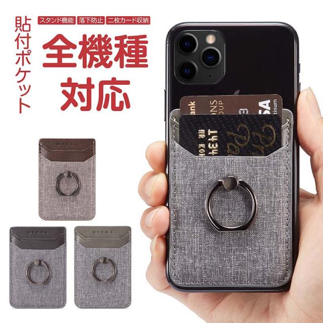 スマホカードケース貼り付け リング 落下防止 スタンド カードケース スマホ 貼り付け 薄型 スマホポケット カード スマホカードケース カード収納 背面ポケット カードポケット 貼る スマホアクセ icカード 収納ポケット ステッカーポケット