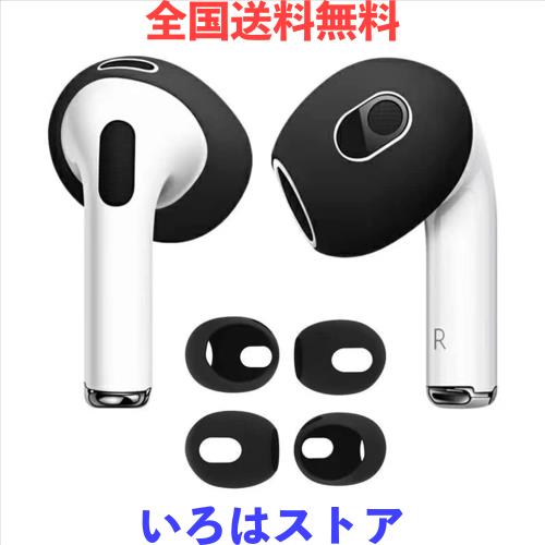【4個入り】AMAPC for AirPods 3 イヤーピース 2023 シリコーン製イヤホン カバー airpods 3 落ち防止イヤーピース分離可能 遮音性/フィット感/脱落防止 ブラック