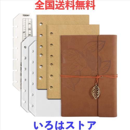 DY.2ten システム手帳 A7 ミニ6穴 ポケットサイズ リフィル75枚 クラフト紙 メモ帳 PUレザー バインダー 小さい ミニ 手帳 クリア ファス