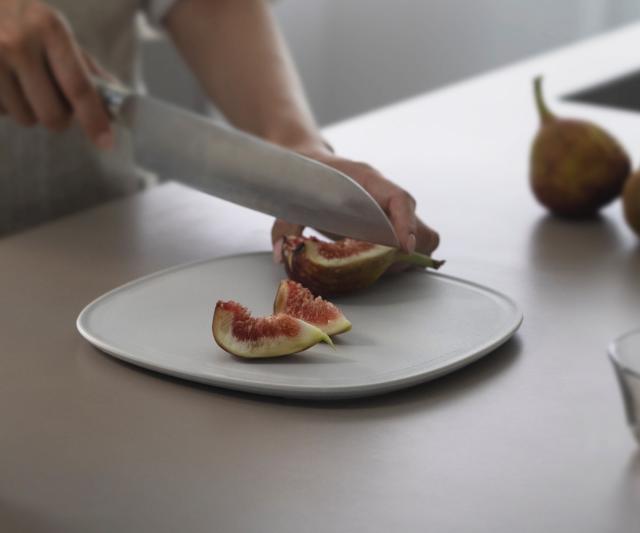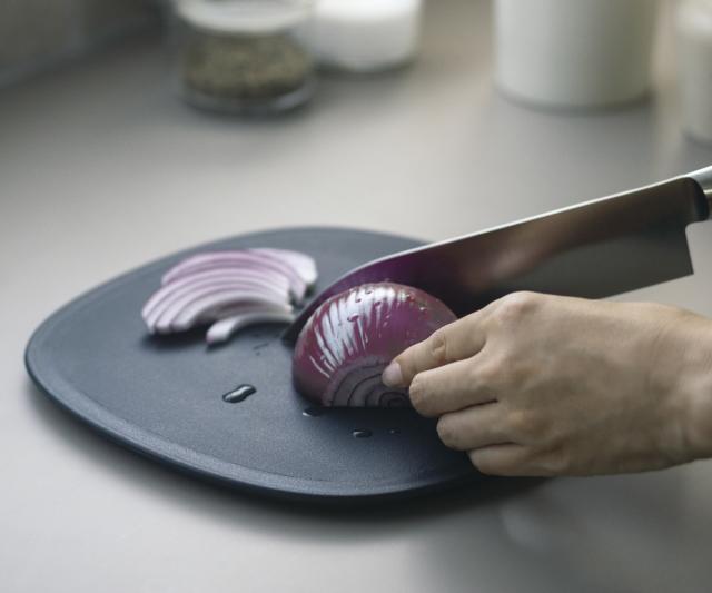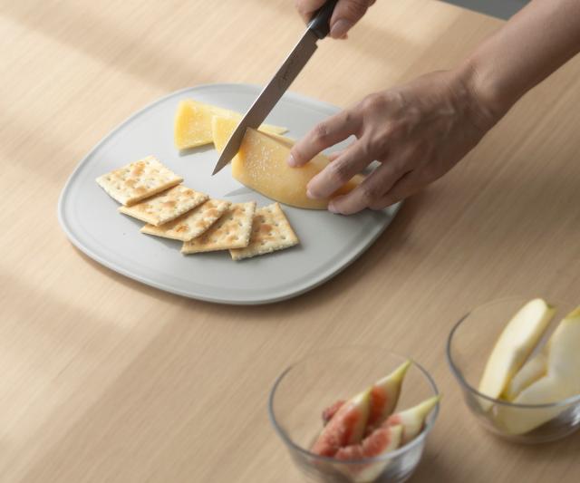 裏面にある四隅のグリップと適度な重さで滑りにくく、安定して切れるまな板です。ちょっとした食材を切る時に便利なコンパクトなサイズです。