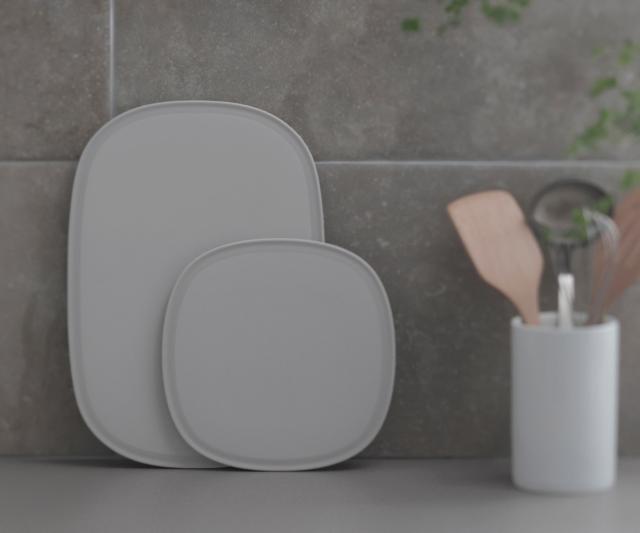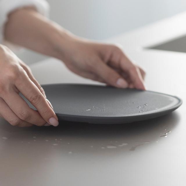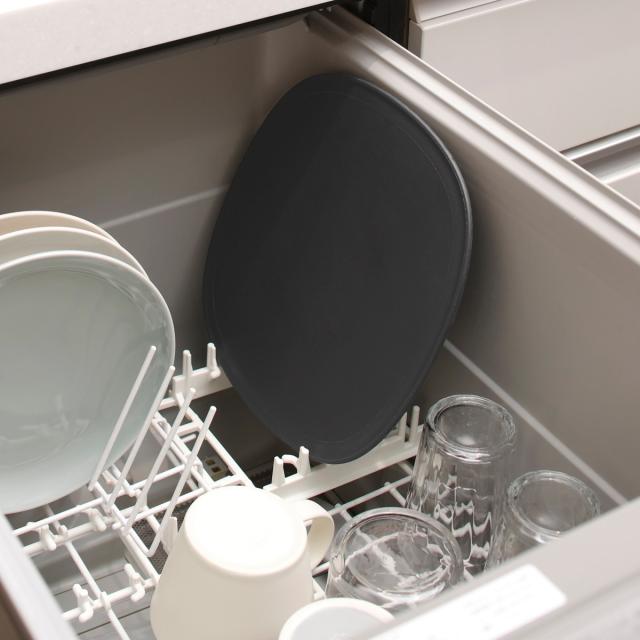 指が入って持ち上げやすいフチ形状です。調理台が濡れていても張り付かず、スムーズに移動できます。
