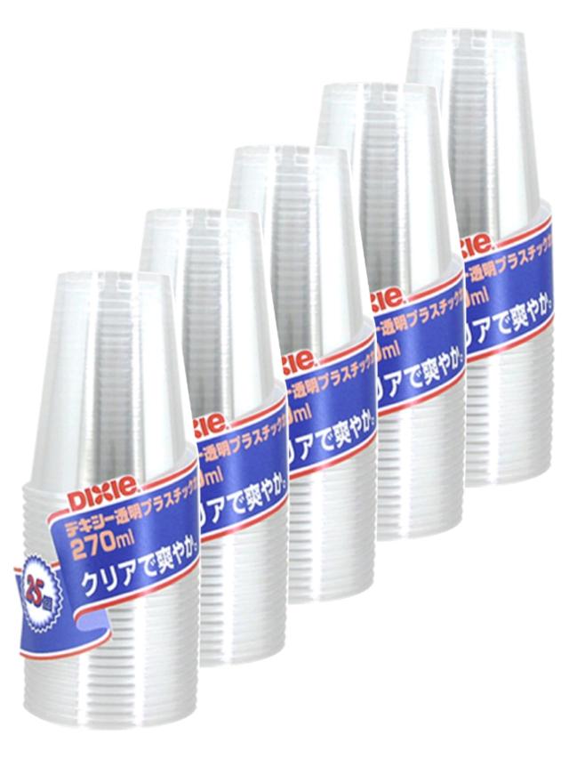 日本デキシー プラスチックカップ 270ml 透明 25個入×5 使い捨て クリアカップ プラスチックコップ 日本製 エコノウエア KPC259ES