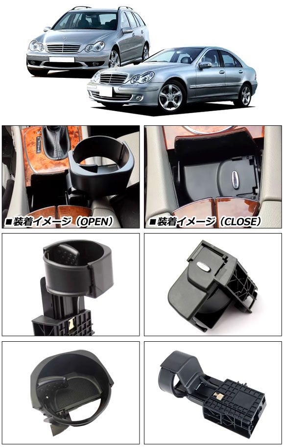 ドリンクホルダー メルセデス・ベンツ Cクラスステーションワゴン S203 C180/C200/C230/C240/C280/C320/C32AMG/C55AMG 2001年〜2008年 ABS製 コンソールボックス用 AP-AS1052