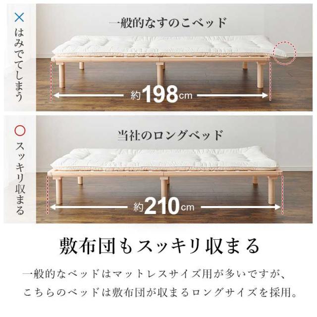 敷布団が使えるロングサイズで床面高さは3段階調整が可能。
