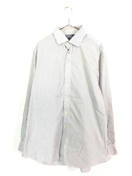 古着 Polo Ralph Lauren 「REGENT CUSTOM FIT」 白×黒 ストライプ ワイドカラー シャツ 17 1/2 古着