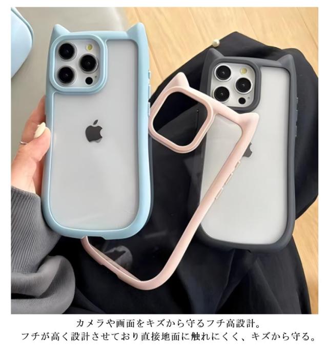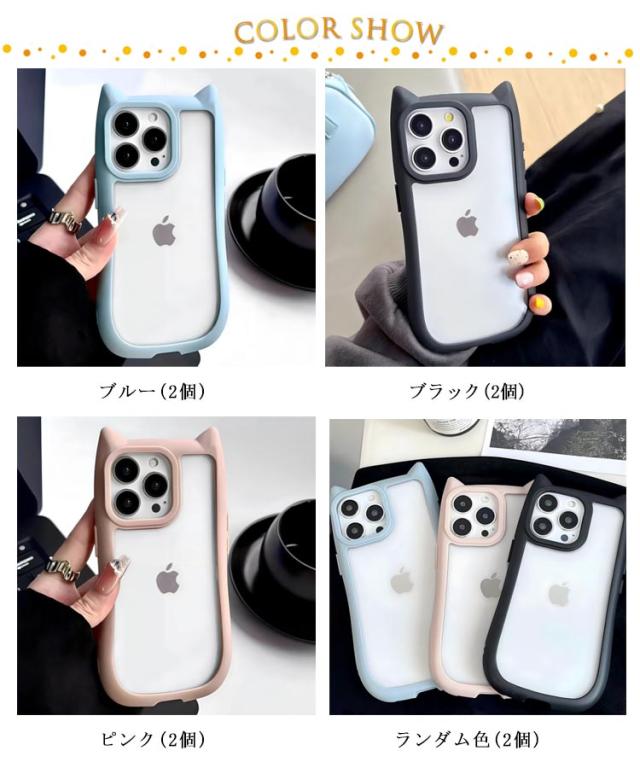 | 猫耳のデザインが可愛いクリアスマホケース。【2個セット】 衝撃吸収性のある非常に軽く柔らかい質の高いTPU素材を使用し、着脱もスムーズに。 カメラや画面をキズから守るフチ高設計。フチが高く設計させており直接地面に触れにくく、キズから守る。 背面がクリアなのでケースの中にお気に入りの写真やステッカーを挟む事ができて、推し活にもおすすめ | |