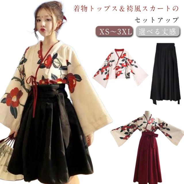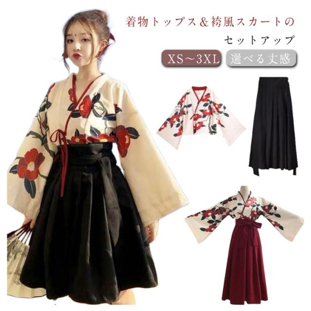 衣装 和服 花柄 上下セット 中華 コスプレ 袴セット 袴 チャイナ服 仮装 ハロウィン 華ロリ 着物 ロリータ ハロウィン ショートスカート ロングスカート 卒業式 大きいサイズ かわいい 体型カバー 着?せ 可愛い ギフト プレゼント 送料無料