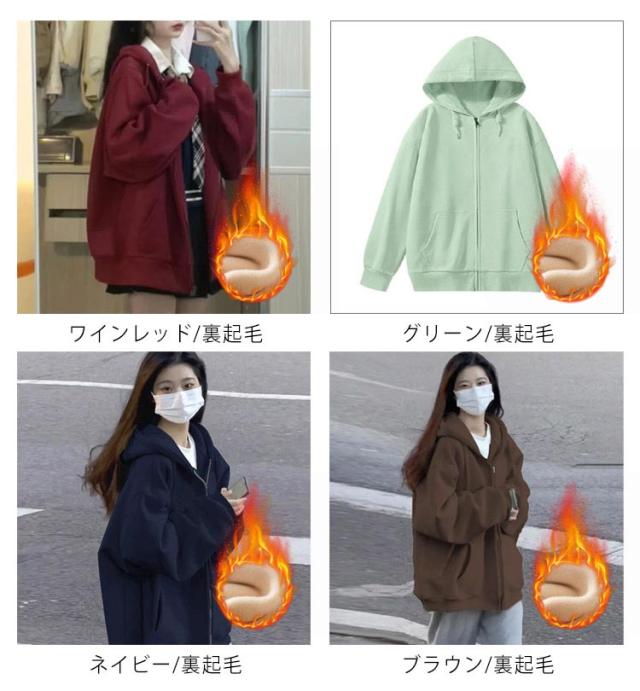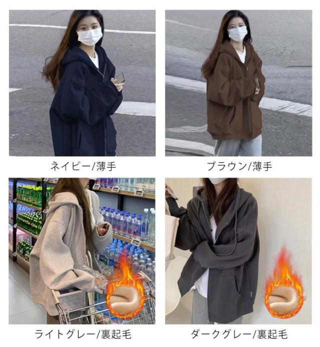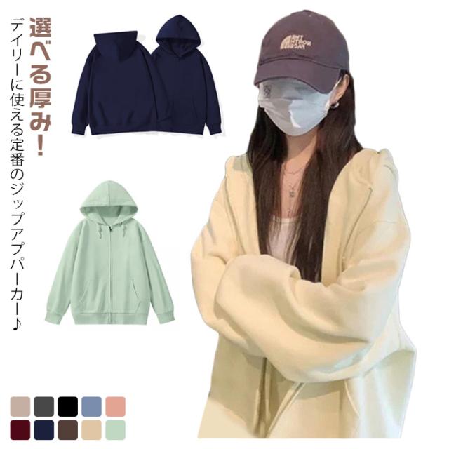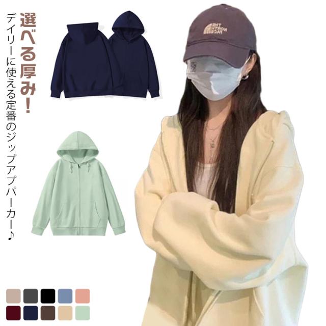 ジップアップパーカー パーカー ジップパーカー レディース スウェット 春秋冬 体型カバー 無地 ジップパーカー カジュアル カジュアル 通学 ジップアップ 学生 ゆったり フード付き 春服 秋服 裏起毛 着?せ ジャケット アウター ギフト プレゼント