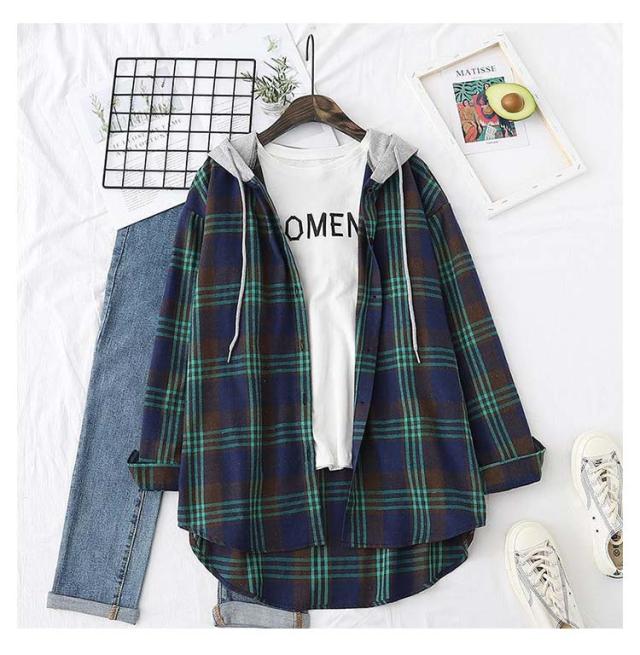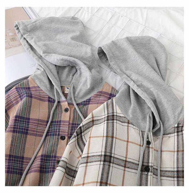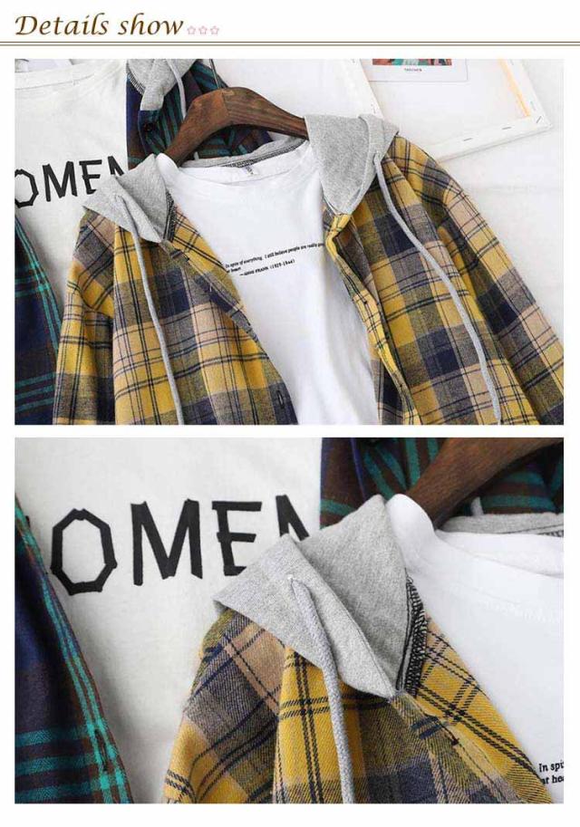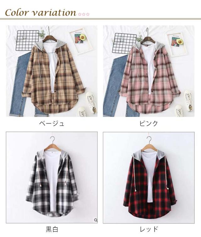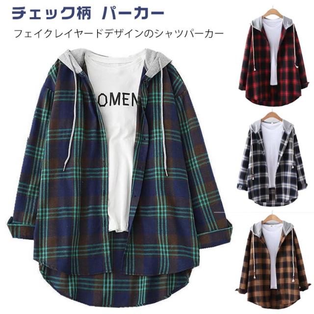 羽織 韓国風 チェック柄 定番 個性的 レディース アウター ライトアウター チェック柄 ストリート系 シャツパーカー シャツ ダンス衣装 ジャージ ライトジャケット フード付き 韓国ファッション アウター ゆったり 体型カバー カジュアル