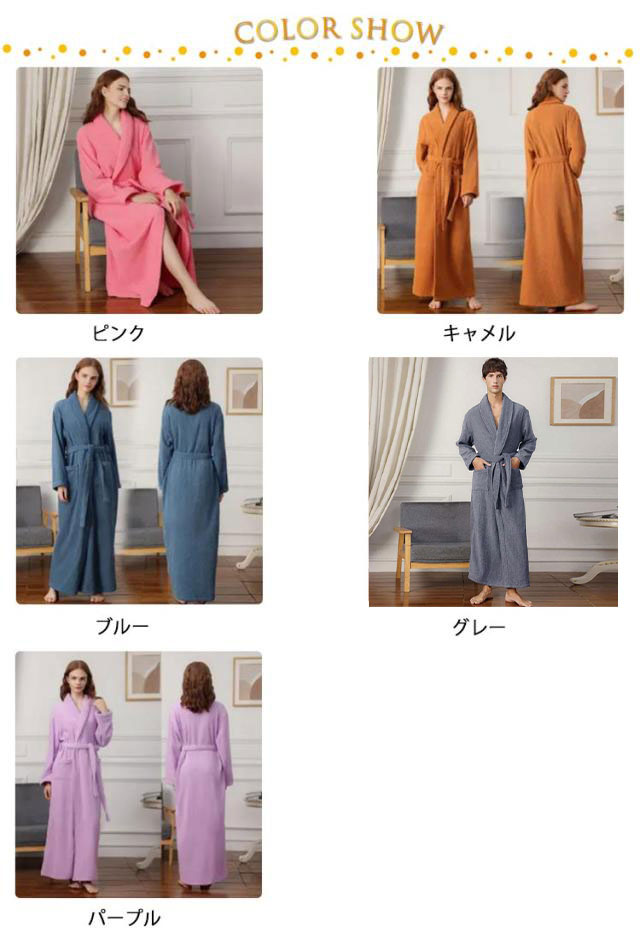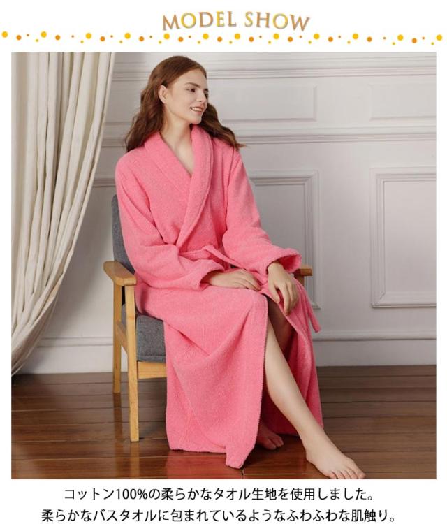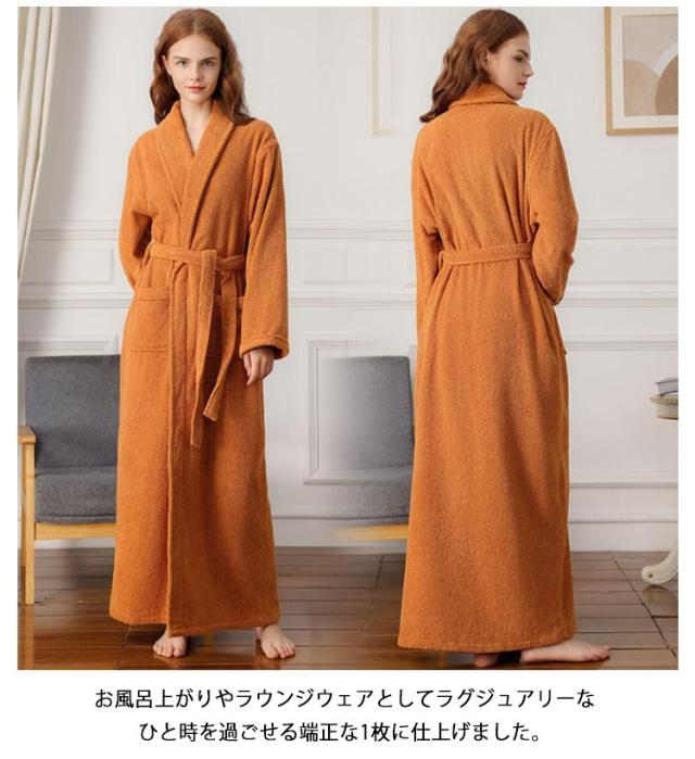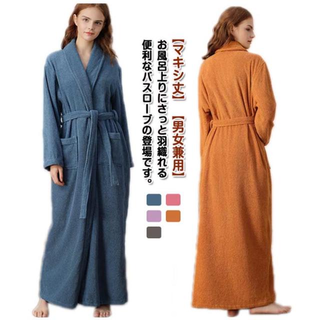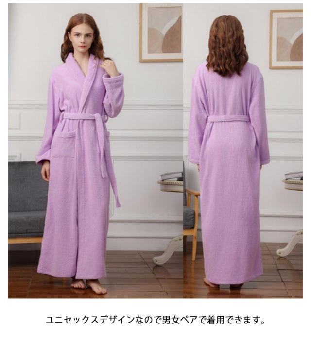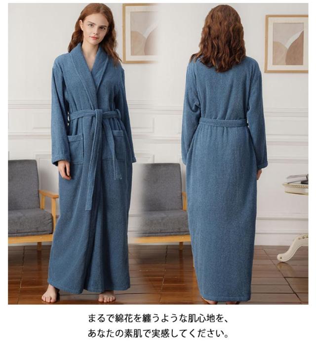 【送料無料】100%綿 バスローブ マキシ丈 レディース メンズ 厚手 ロング ガウン ローブ 吸水 タオル地 綿 パイル バスタオル 風呂上がり 湯浴み着 シャワー後 秋 冬 ルームウェア 部屋着 ナイトガウン 着る毛布